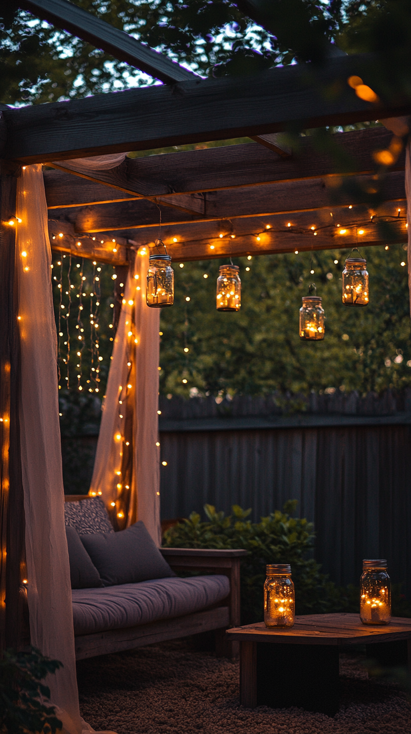 - String lights across pergola beams